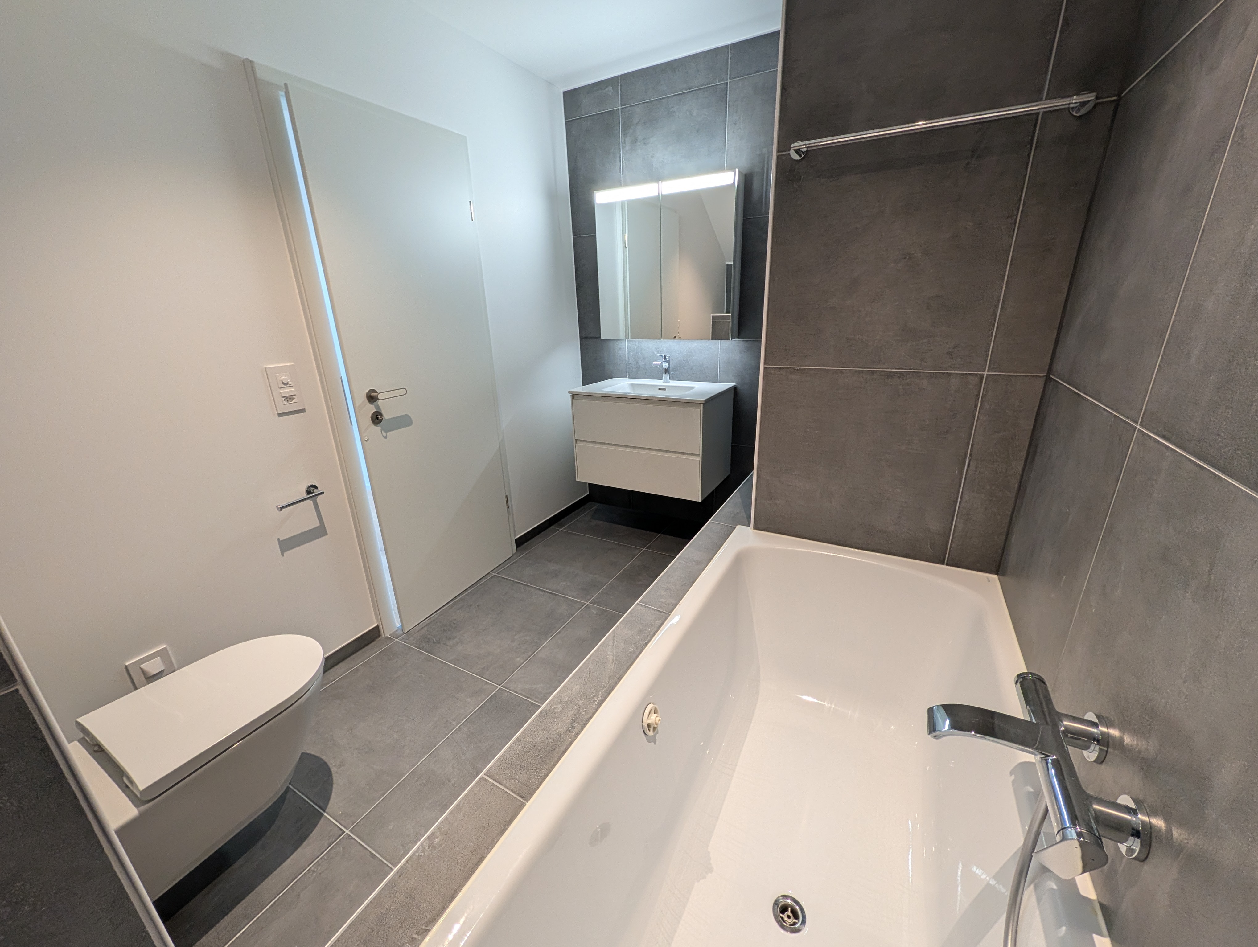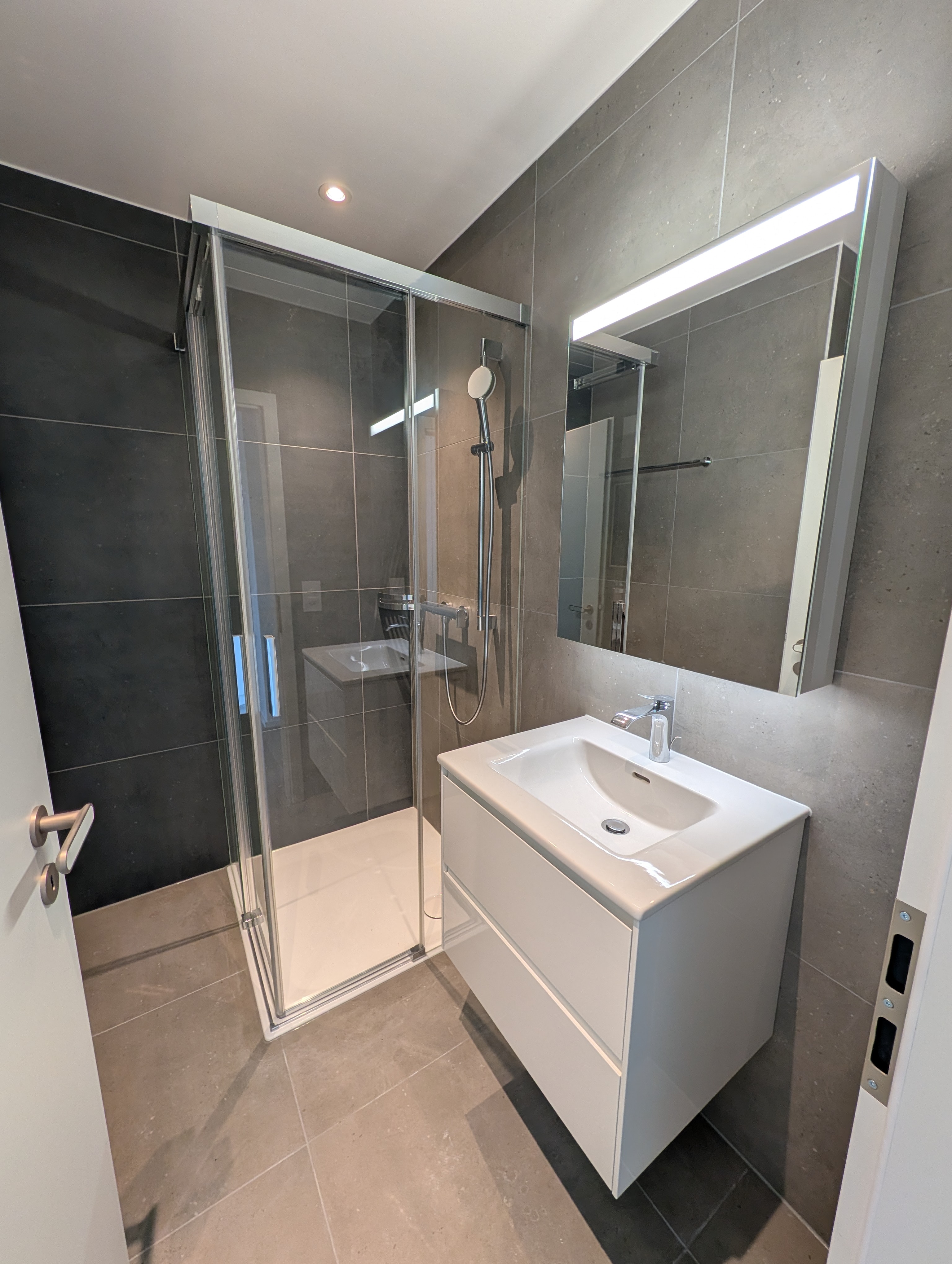 – Bâtiment contemporain de standing avec notamment triple vitrage, panneaux photovoltaïques, pompe à chaleur, chauffage au sol et ascenseur.